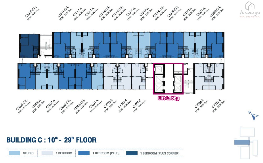อาคาร C ชั้น 10-29 ห้องพักอาศัยของอาคาร C จะเริ่มต้นที่ชั้น 2 ไปจนถึงชั้น 33 โดยมี Typical Floor Plan อยู่ที่ชั้น 10-29 มีจำนวนห้องพักอาศัยสูงสุดอยู่ที่ 24 ห้อง/ชั้น เช่นกัน