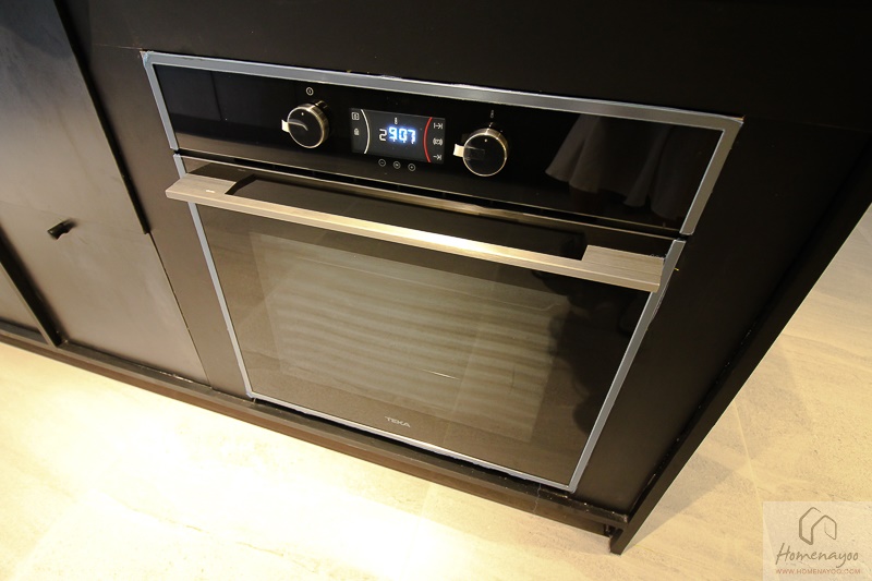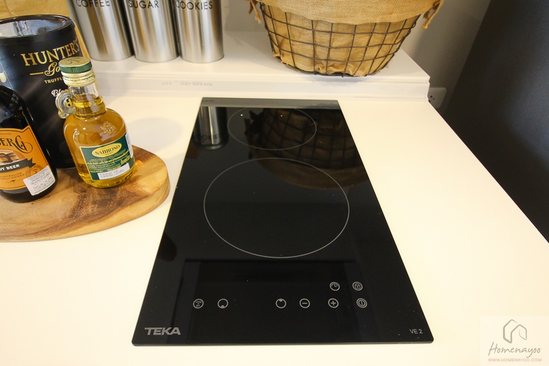 เคาน์เตอร์ครัวที่ได้เป็นรูป L Shape มี Hob-Hood-Sink ของ Teka ติดตั้งมาให้