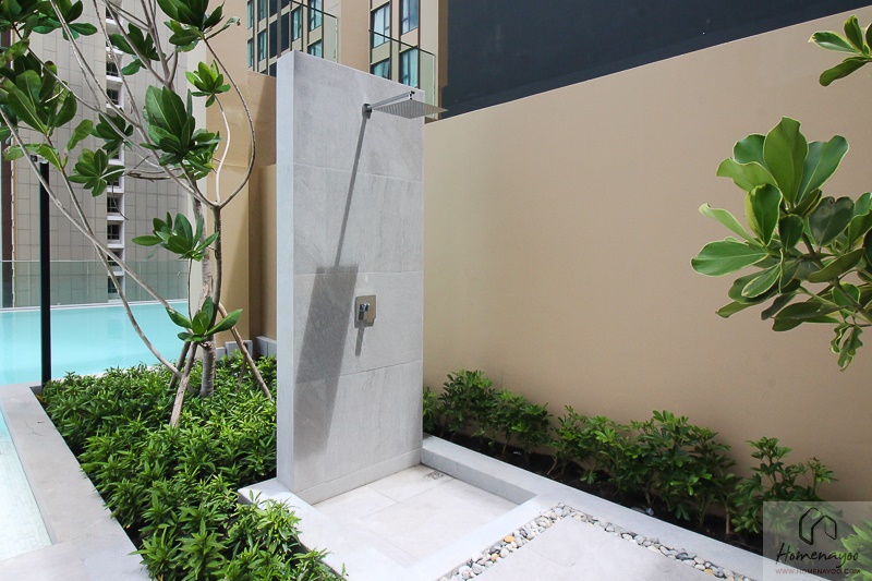 นอกจากนี้บริเวณข้างสระยังมี Shower สำหรับล้างตัวเตรียมมาให้อีก 1 จุดค่ะ