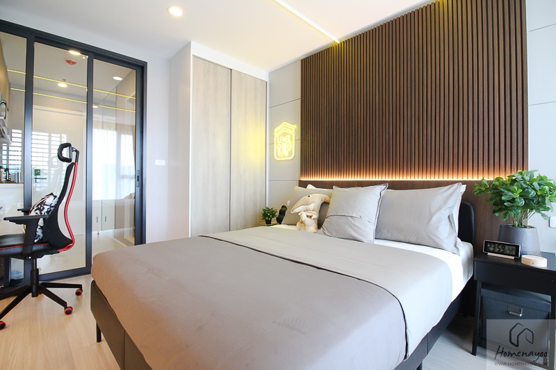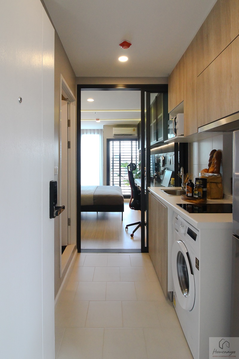 ห้องภายในโครงการมีขนาดและรูปแบบให้เลือกค่อนข้างเยอะ ใครมีงบประมาณเท่าไหร่ ชอบ Lay Out ห้องแบบไหนก็สามารถเลือกได้ มีทั้งครัวเปิด ครัวปิด ครัวติดระเบียง ครัวอยู่ฝั่งด้านใน ห้องนอนกั้นส่วนด้วยผนังกระจก-ผนังทึบ ห้องหน้ากว้าง ห้องหน้าแคบ ส่วนวัสดุและเฟอร์นิเจอร์ที่ให้มาก็มีความสวยงามและให้มาครบเลยนะคะ อย่างห้อง Studio นี่ก็ไม่จำเป็นต้องซื้อเฟอร์นิเจอร์เพิ่มแล้ว