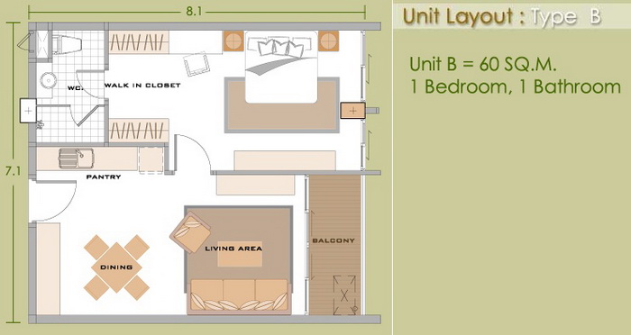 | ลักษณะห้องและขนาดห้อง | – 1 Bed / 55.00 – 64.00 ตร.ม. – 2 Bed / 70.00 – 98.00 ตร.ม. – 3 Bed / 152.00 – 214.00 ตร.ม. – 5 Bed / 235.00 – 277.00 ตร.ม. |