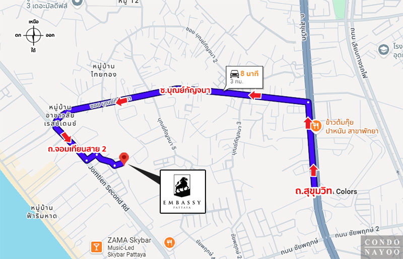เตรียมพบ Embassy พัทยา คอนโดหรูโครงการใหม่ จาก The Embassy Development โครงการตั้งอยู่บนทำเลศักยภาพบนถนนจอมเทียนสาย 2 ใกล้หาดจอมเทียนเพียง 300 ม.* เดินทางเข้า-ออกเมืองสะดวกสบาย ใกล้จุดขึ้น-ลงมอเตอร์เวย์ และยังอยู่ไม่ไกลจากสนามบินอู่ตะเภา ที่ใช้เวลาเดินทางเพียงครึ่งชั่วโมงเท่านั้น
