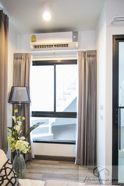 พื้นที่ตรงหน้าต่างสามารถวางโซฟาตัวยาวไว้นั่งเล่นอ่านหนังสือได้ แอร์ติดเหนือหน้าต่าง 1 ตัวของ Trane