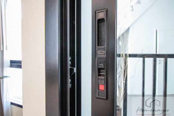 ในสุดซ้ายมือเป็นหน้าต่างบานเลื่อน 2 บาน และบาน Fixed 1 บานด้านล่าง ขวามือเป็นระเบียงหลังห้อง