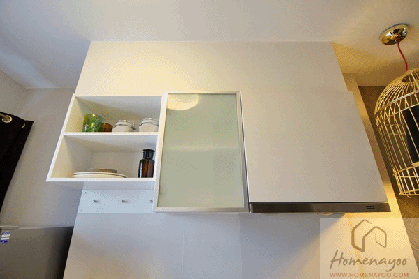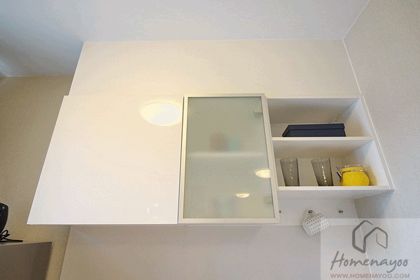 ด้านบนบิวท์อินตู้เก็บของบานเปิด + ชั้นวางของ