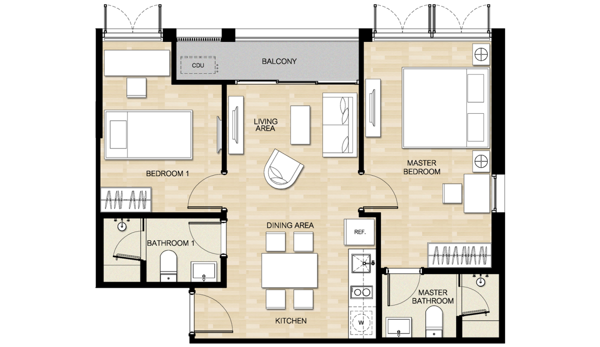 | ลักษณะห้องและขนาดห้อง | – 1 Bed / 31.00-41.00 ตร.ม. – 2 Bed / 61.75-65.25 ตร.ม. – 3 Bed / 92.25 ตร.ม. |