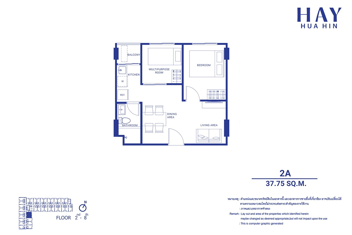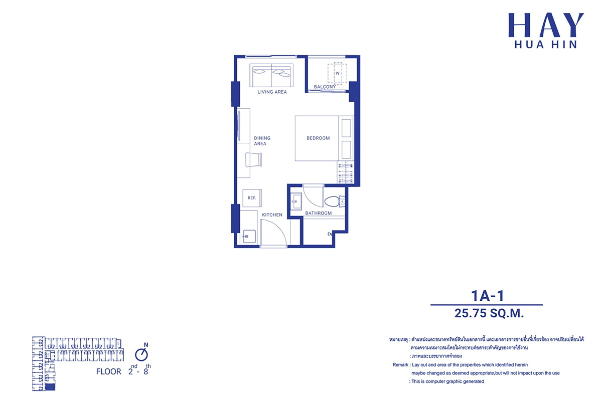 เฮย์ หัวหิน เป็นคอนโด Low-Rise 8 ชั้น 1 อาคาร พื้นที่โครงการ 1.6 ไร่ จำนวน 252 ยูนิต มีห้องพักให้เลือกแบบ 1 Bedroom ขนาด ประมาณ 24.50-26.00 ตร.ม. และ 1 Bedroom Plus ขนาด ประมาณ 37.75 ตร.ม.