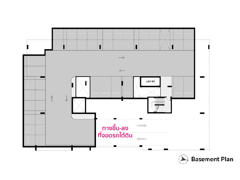 แปลนชั้นใต้ดินเป็นชั้นจอดรถ มีทางขึ้นลงเชื่อมจากชั้น 1 นับช่องจอดได้ 25 ช่อง และมีบันไดเดินเชื่อมขึ้นมาที่ชั้น 1 ได้