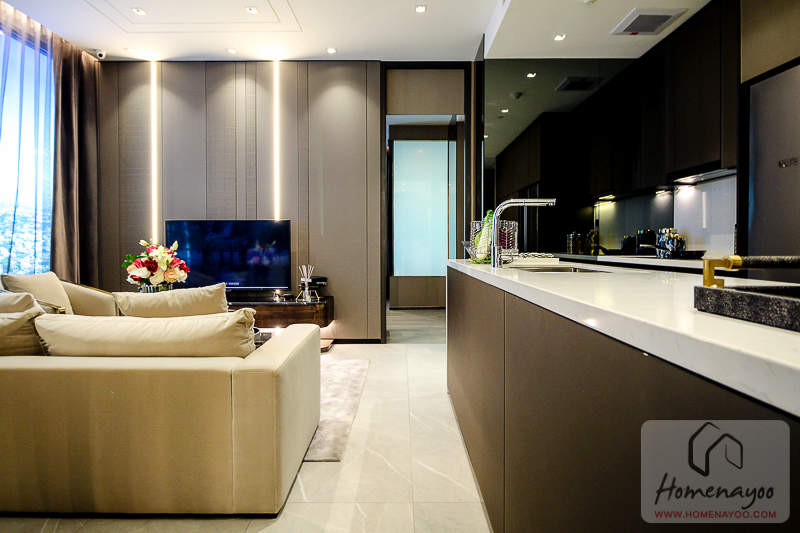 เข้าห้องมาจะเจอส่วน Public อย่างส่วนครัวเปิด ส่วนรับประทานอาหารที่อยู่ติดระเบียง ต่อเนื่องไปส่วนห้องนั่งเล่น ห้องขายแบบ Fully Fitted พร้อมชุดครัว, ชุดสุขภัณฑ์, ตู้เสื้อผ้า Built in และ Digital Door Lock ติดตั้งมาให้ทุกห้อง ตัวห้องจะเป็นอย่างไรเราไปชมกันเลยค่ะ