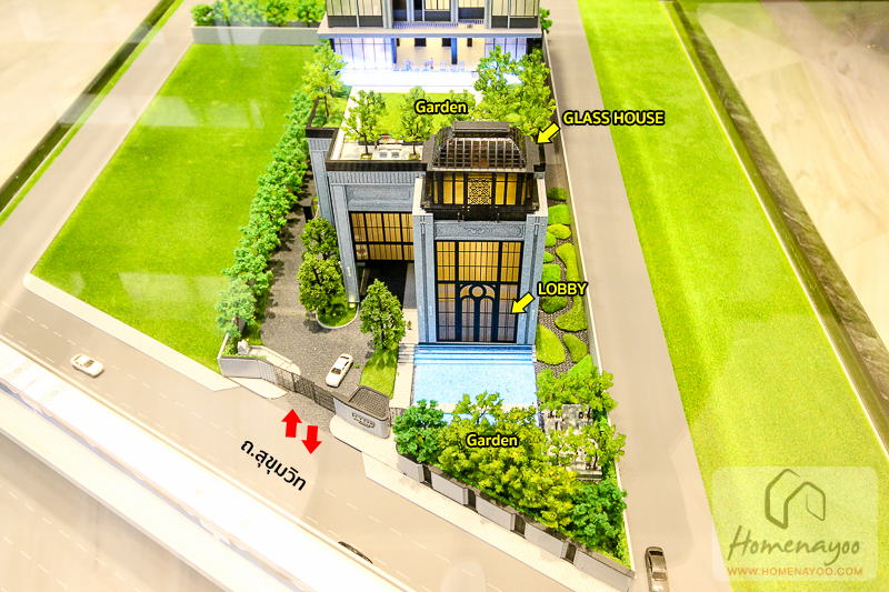 การเดินทางด้วยรถยนต์ส่วนตัว – สำหรับคนใช้รถ โครงการมีทางเข้าออกสองฝั่ง ฝั่งนึงตั้งอยู่ติดถนนใหญ่สุขุมวิท อีกฝั่งติดซอยสุขุมวิท 59 เชื่อมต่อไปออกซอยทองหล่อ 10 ลัดไปขึ้นทางด่วนที่เอกมัยได้ ใช้เลี่ยงรถติดได้พอสมควร ที่ตั้งโครงการเป็นสุขุมวิทโซน Prime ระหว่างซอย สุขุมวิท 63(เอกมัย) และ สุขุมวิท 55 (ทองหล่อ) จัดเป็นทำเลที่คนใช้รถมีความสะดวกสบาย และมีทางเลือกในการเข้าออกเยอะค่ะ
