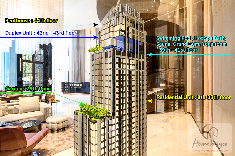 ทำเลที่ตั้งโครงการ – โครงการ HYDE Heritage ทองหล่อ เป็นคอนโดมิเนียม High Rise ความสูง 45 ชั้น จำนวนยูนิตที่พักอาศัย 311 ยูนิต ทำเลติดถนนใหญ่สุขุมวิท ที่มีความสะดวกสบายสูงและมีจุดแข็งที่น่าสนใจหลายอย่าง ทั้งใกล้สถานีรถไฟฟ้า BTS สถานี เอกมัย และ สถานี ทองหล่อ, ใกล้จุดขึ้นลงทางด่วนทั้งรามอินทรา- อาจณรงค์และศรีรัช รายล้อมไปด้วยร้านอาหารนับร้อยร้านในซอยทองหล่อ เอกมัย และห้างสรรพสินค้าขนาดใหญ่มากมายทั้ง Gateway Ekamai, Major เอกมัย, Emporium, Emquartier, Terminal 21 ในระยะตั้งแต่เดินถึงไปจนถึงนั่ง BTS ไปเพียง 2-3 สถานีเท่านั้น