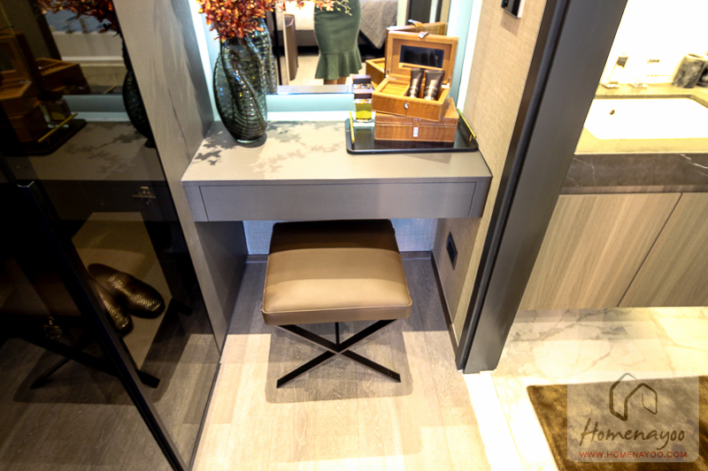 และทำ Built in โต๊ะเครื่องแป้งพร้อมติดกระจกเงามาให้ได้ตามนี้