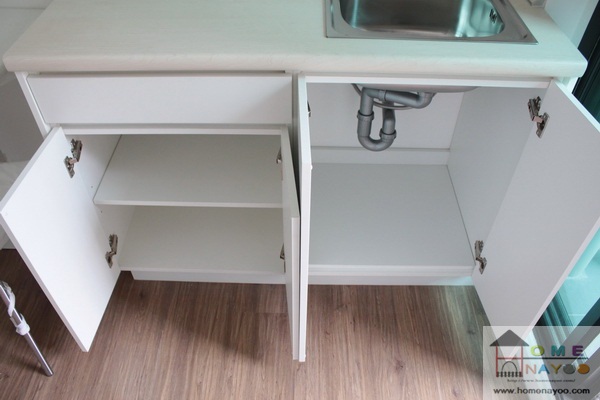 ด้านล่างเป็นตู้เก็บของ 2 ช่อง แบบเปิดออก 2 ฝั่ง