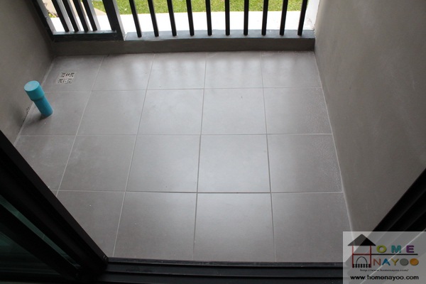 ระเบียงห้องขนาด 120 x 150 ซม. ปูพื้นกระเบื้องขนาด 12 x 12 ซม.