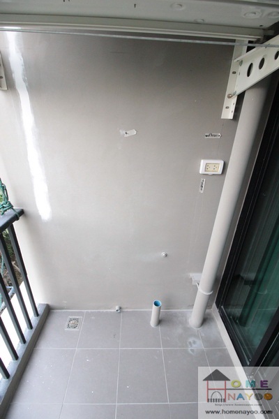 ระเบียงห้องเดินปลั๊กไฟแบบกันน้ำ พร้อมท่อน้ำดี และท่อน้ำทิ้งให้เรียบร้อย