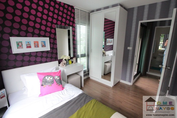 – การออกแบบโครงการ และการออกแบบที่ดิน โครงการออกแบบอาคารเป็นตัว L 2 อาคาร ประกบเข้าหากัน ด้านหน้าโครงการหันหน้าออกทางทิศตะวันตก ส่วนห้องพักจะหันหน้ารับทุกทิศ สิ่งอำนวยความสะดวกจะตั้งอยู่ตรงกลางของอาคารทั้ง 2 อาคาร ส่วนเรื่องวิว รอบโครงการจะเป็นบ้านพักอาศัย สูงประมาณ 2-3 ชั้น เท่านั้น ทำให้เรื่องของวิวตึกบดบังนั้น ไม่มีปัญหาแน่นอนค่ะ ในส่วนของห้องพัก จะมีให้เลือกทั้งหมด 3 แบบ คือ 1 ห้องนอน ขนาด 24 ตร.ม. และ 27 ตร.ม. และ 2 ห้องนอน ขนาด 45 ตร.ม. แม้ห้องเริ่มต้นจะมีขนาดเล็ก แต่ก็ถูกจัดวางให้อย่างลงตัว ส่วนสำหรับ 2 ห้องนอน ก็ออกแบบการใช้งานได้อย่างเต็มที่ และแบ่งแยกการใช้งานได้อย่างลงตัว ส่วนวัสดุของห้องที่ได้รับ เป็นเกรดธรรมดา เหมาะสมกับราคาของห้อง ส่วนห้องที่ทางโครงการให้ จะเป็นแบบ Fully Furnished มีเฟอร์นิเจอร์บิวท์อิน และลอยตัว ผนังฉาบเรียบสีขาว โคมไฟซาลาเปาค่ะ
