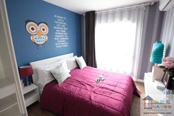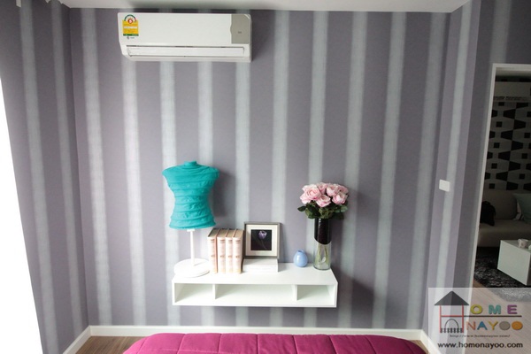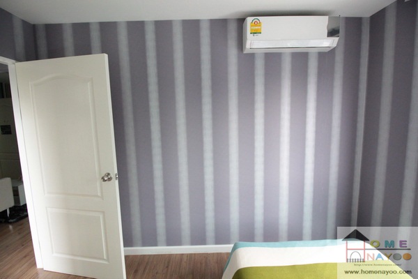 บรรยากาศภายในห้องนอนเล็ก ฝั่งขวามีตู้เสื้อผ้าแบบเลื่อน ขนาด 2.4 x 1 เมตร