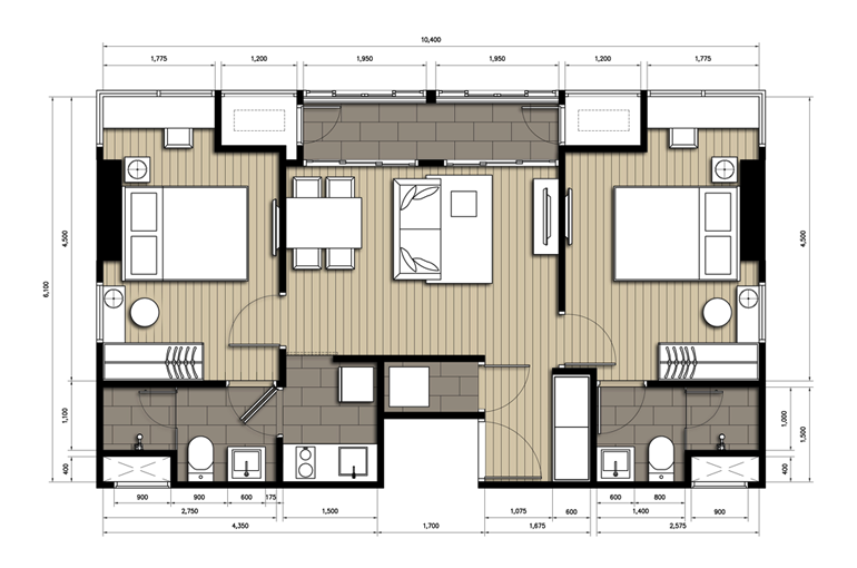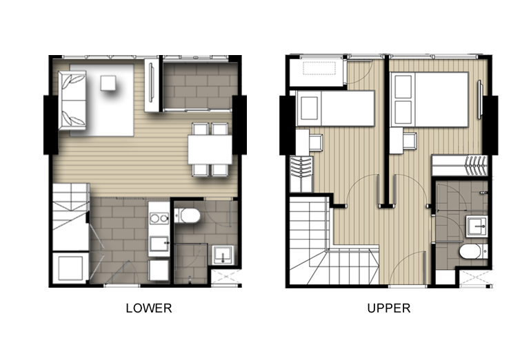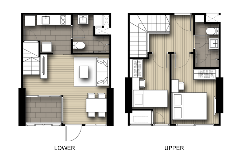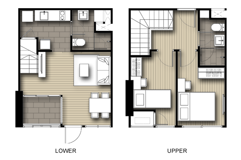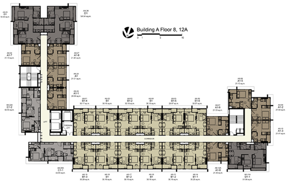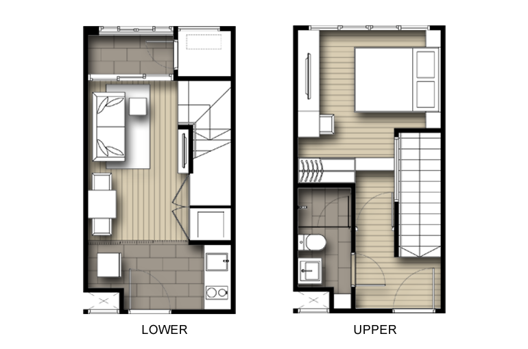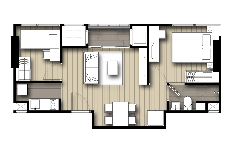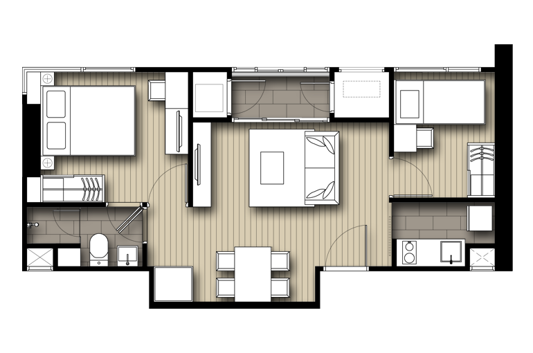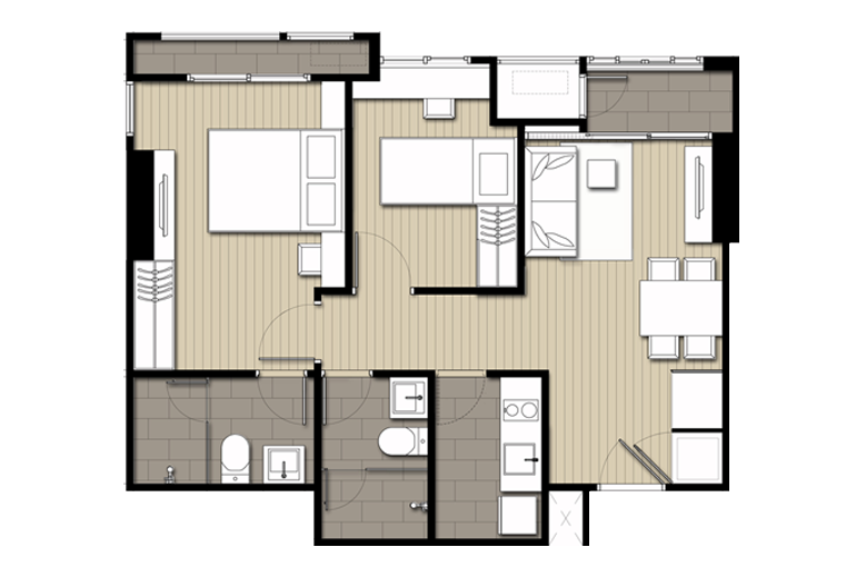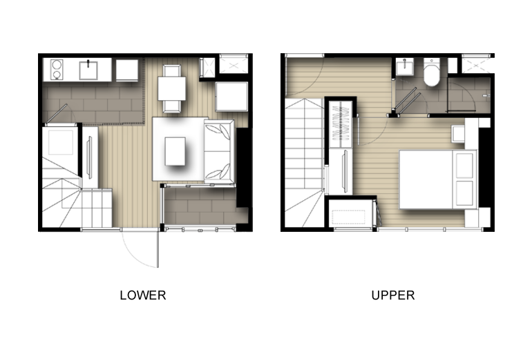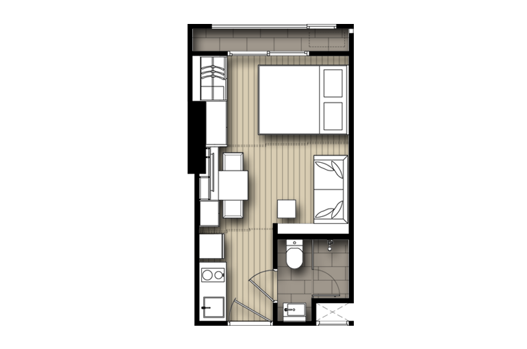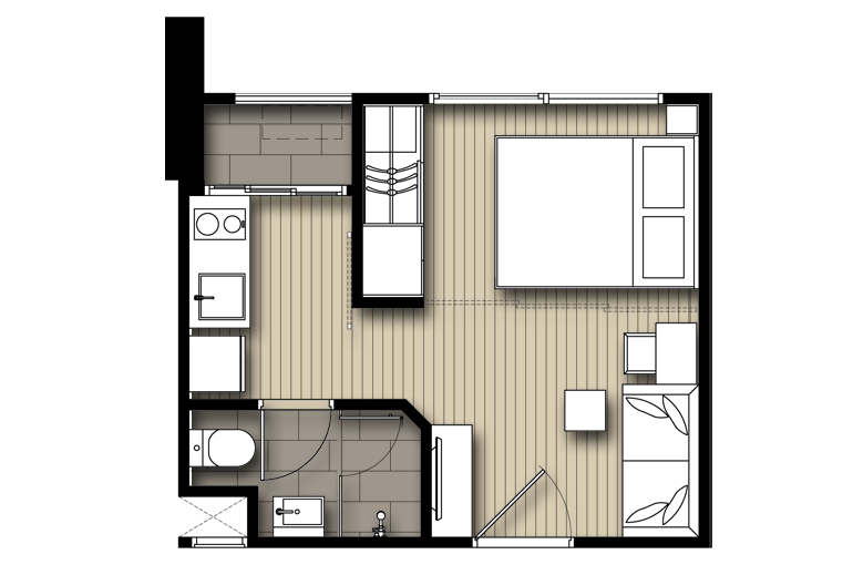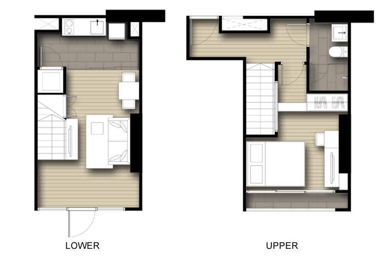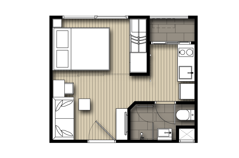 | ลักษณะห้องและขนาดห้อง | Studio, 1 Bed, 2 Bed, Duplex |