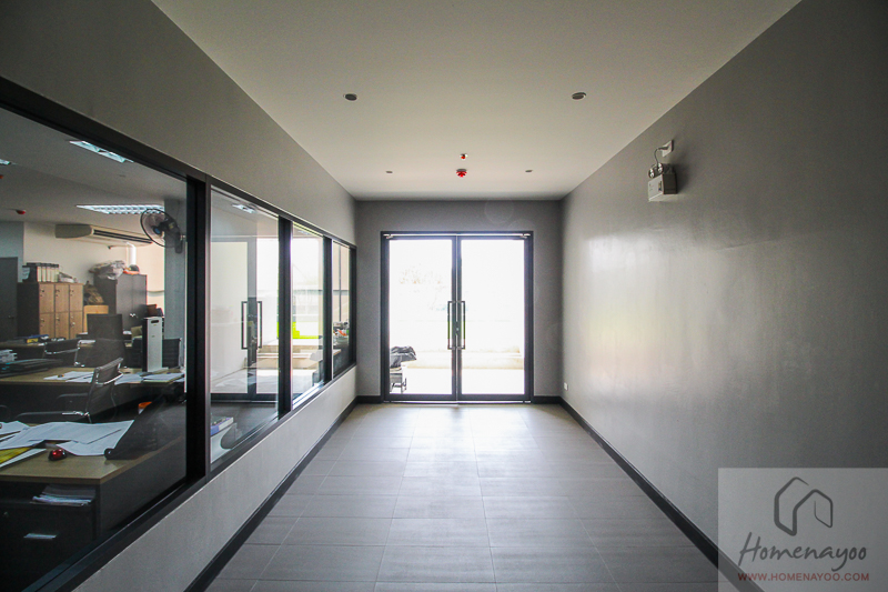 ถัดไปจะเป็นระเบียงหลังห้อง มีประตูบานเลื่อน 2 บาน
