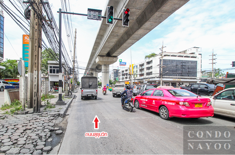 ถัดมาจะเจอทางเข้าโครงการซ้ายมือ อยู่ติดถนนสุขุมวิท