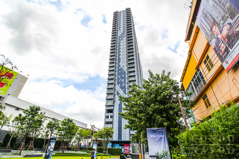 มองเข้าไปจะเห็นตัวอาคารยาวขนานที่ดินโครงการขนาด 4-1-48.8 ไร่ 1 อาคารสูง 35 ชั้น