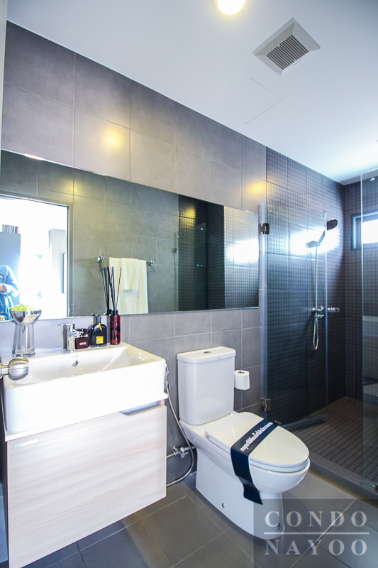 ด้านในเป็นพื้นที่ส่วนเปียก ติดตั้งฉากกั้นอาบน้ำมาให้เลยแบบบานเปิด