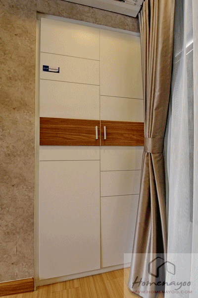 สาเหตุที่มุมทางด้านนี้เหมาะสมทำเป็นชั้นวางทีวีที่สุดเนื่องจากว่า มีเหลี่ยมมุมของเสาอาคารทำให้โดนบังคับให้บิวท์อินชั้นวางตรงจุดนี้จะได้เติมช่องว่างให้มันเข้ามุมได้พอดี
