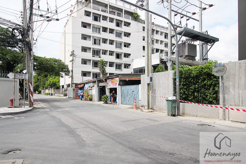 เยื้องๆกับโครงการทางฝั่งทิศตะวันออกเป็นซอยจำเนียรเสถียร เชื่อมไปออกถนนประดิษฐ์มนูธรรมได้ค่ะ ส่วนอาคารสีขาวที่เห็นด้านหลังเป็นโรงเรียนสมาคมไทย – ญี่ปุ่น