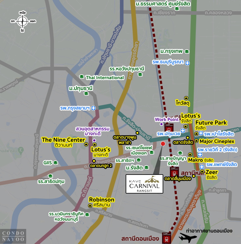 Kave Carnival รังสิต คอนโดใหม่จาก AssetWise ที่ตั้งโครงการอยู่ติดถนนใหญ่รังสิต-ปทุมธานี ต.ประชาธิปัตย์ อ.เมืองปทุมธานี จ.ปทุมธานี ทำเลดี ใกล้ ม.รังสิต และรถไฟฟ้า SRT รังสิต เข้าเมืองสะดวก เชื่อมต่อถนนพหลโยธิน และดอนเมืองโทลล์เวย์ ใกล้ Future Park รังสิต และสิ่งอำนวยความสะดวกมากมาย