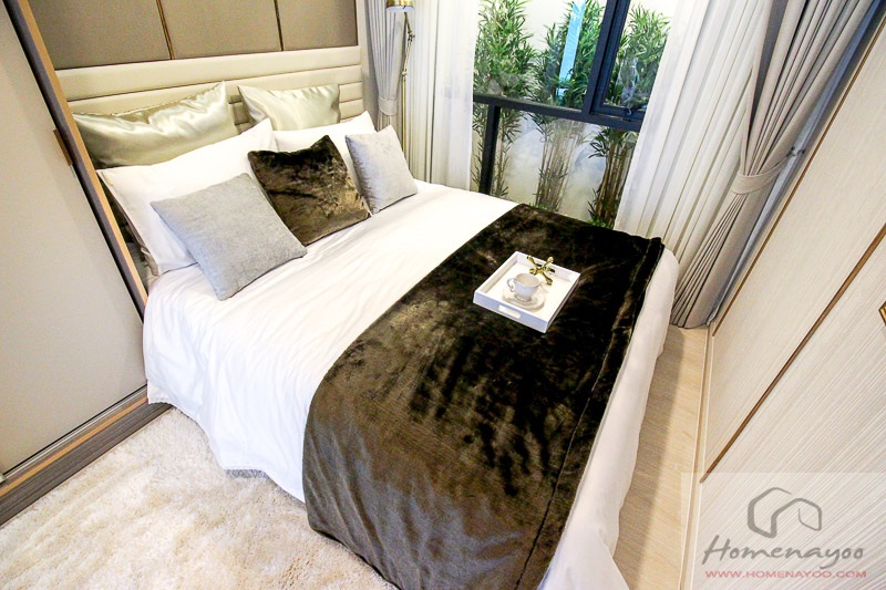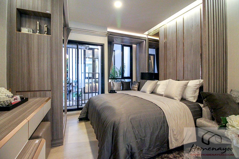 เข้ามาในส่วนห้องนอนจะเห็นด้านซ้ายเป็นตู้เสื้อผ้า อีกด้านจะเป็นเตียงและมีประตูต่อออกไปที่ระเบียงได้ ทำให้มีแสงเข้าทางด้านนี้ มีหน้าต่างทางด้านข้างของตู้เสื้อผ้า ประตูจะอยู่ตรงฝั่งเดียวกับเตียง มีพื้นที่ปลายเตียงประมาณ 60 ซม.