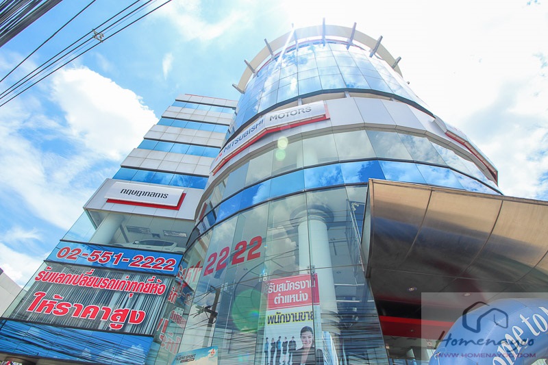 หน้าตาโชว์รูมมิตซูบิชิ เป็นอาคารสูงเท่าอพาร์ทเมนท์ 8 ชั้นค่ะ