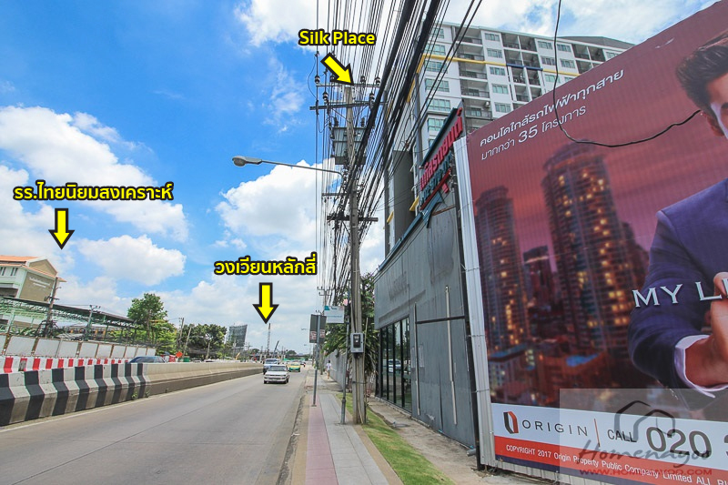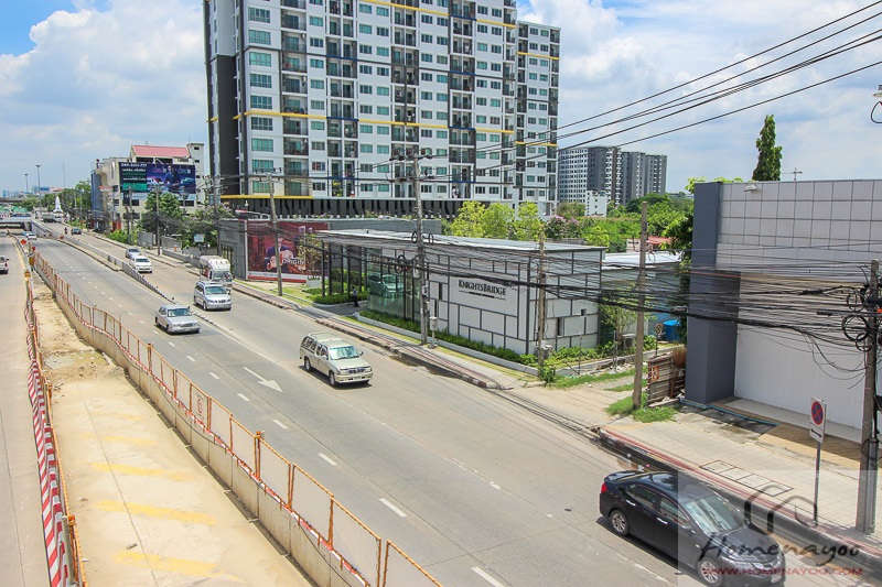จากตรงข้ามรร.ไทยนิยมสงเคราะห์ มองย้อนกลับไปที่โครงการของเรา มองเห็นสะพานลอย และ Tesco Lotus หลักสี่ฝั่งตรงข้าม