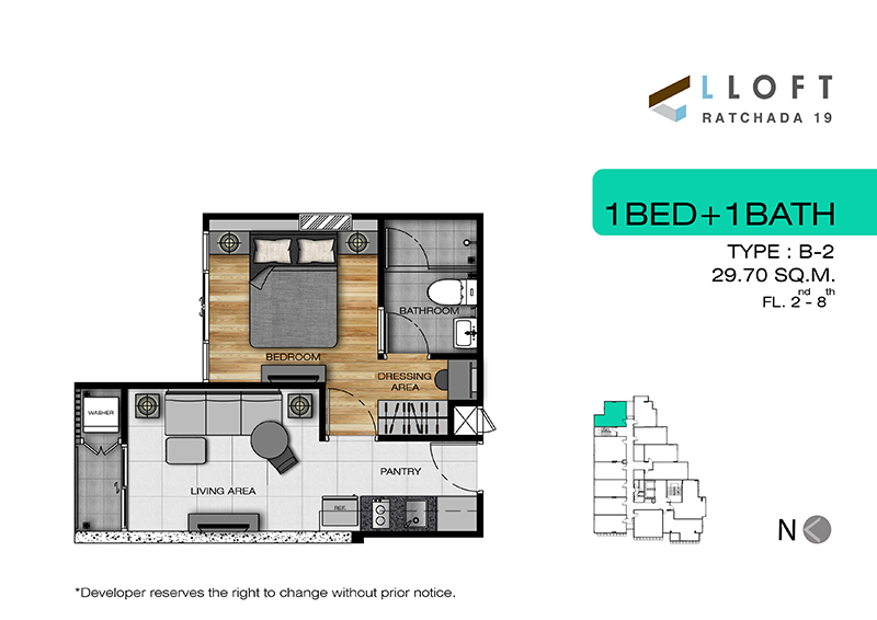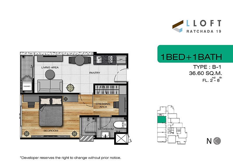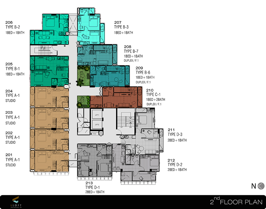 | ลักษณะห้องและขนาดห้อง | – Studio / 26 – 31 ตร.ม. – 1 Bed / 27 – 42 ตร.ม. – 2 Bed / 35 – 40 ตร.ม. – Duplex / แบบ 1 Bed+2 Baths ขนาด 53 ตร.ม. |