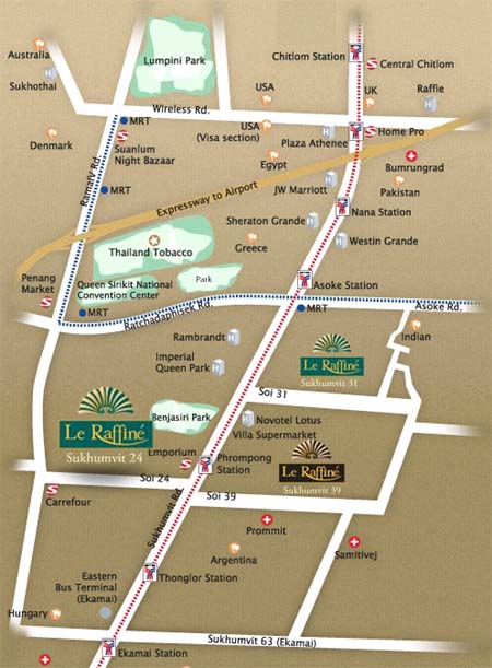 การเดินทางเริ่มจากแยกอโศก ถนนรัชดาภิเษก(พระราม 3) ⇒ ถนนสุขุมวิท BTS อโศก ตรงไป 600 เมตร ⇒ แยกสวัสดี ซอยสุขุมวิท 31 อีก 80 เมตรถึงโครงการ Le Raffiné Jambunuda สุขุมวิท 31 *ติด S31 Hotel