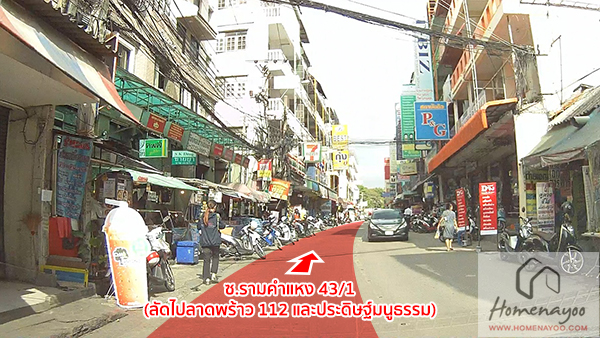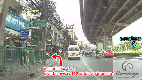 เดินมาเรื่อยๆจนถึงหน้าปากซอยรามคำแหง 43/1 วัดระยะทางจากโครงการมา ประมาณ 600 เมตร