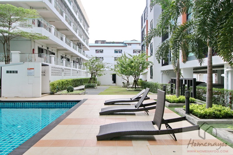 ♦ พื้นที่ส่วนกลาง : มีสิ่งอำนวยความสะดวกมาตรฐานให้ครบ ในส่วนของ Facilities หลักๆ โครงการยกมาไว้ตรงกลางโครงการ เพื่อการใช้งานที่ทั่วถึง มีสระว่ายน้ำระบบเกลือแบบน้ำล้น ขนาด 7 x 15 เมตร แยกสระเด็ก-สระผู้ใหญ่ให้ มีสวนพักผ่อนขนาดกลางๆ มาตรฐานคอนโด Low-Rise ทั่วไป Lobby เพดานสูงโปร่งดี จัดโซฟารับรองไว้ให้พร้อม ส่วนฟิตเนส จะตั้งอยู่ที่ชั้น 2 ลงเครื่องเล่นไว้หลายประเภท ผนังห้องฟิตเนสเป็นกระจกใสบานใหญ่ เปิดรับวิวสระว่ายน้ำ และ วิวสวนส่วนกลางได้ด้วย