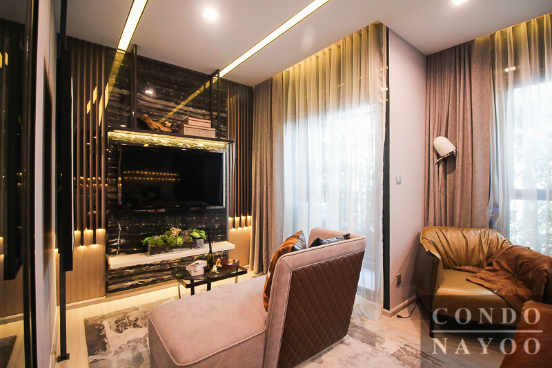 โดยโครงการจะมีติดตั้งปลั๊กไฟและช่องสัญญาณโทรทัศน์ไว้ให้เรียบร้อยเพื่อรองรับการปรับเปลี่ยนเป็นห้องนั่งเล่นค่ะ