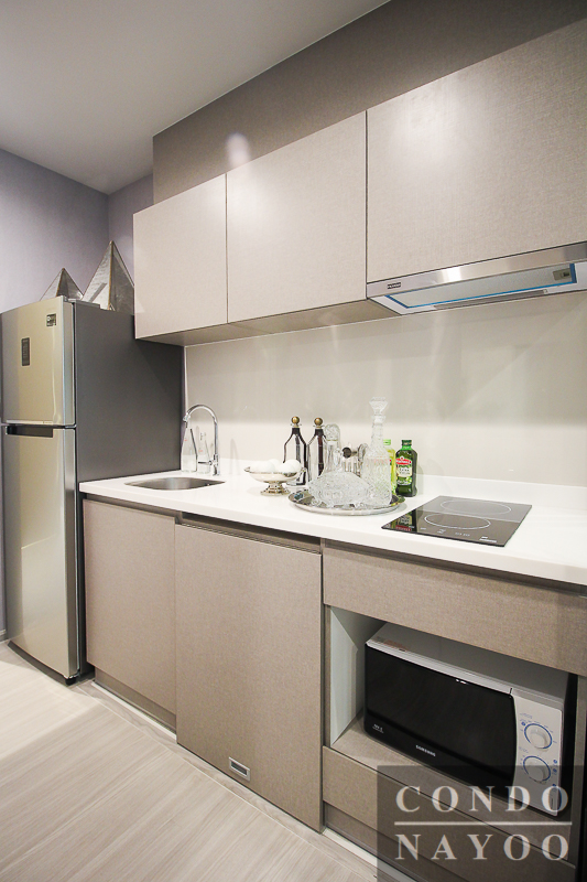 สำหรับอุปกรณ์ในห้องครัวก็จะได้เป็นมาตรฐานเหมือนห้องที่แล้วคือชุดเคาน์เตอร์ครัว พร้อม Hob & Hood, ซิงค์ล้างจานและเตาไฟฟ้าแบบ 2 หัว