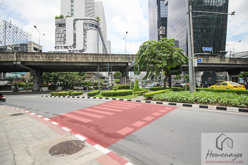 ส่วนที่มีฟุตบาทก็จะค่อนข้างแคบเดินลำบาก แต่ใครที่ใช้รถไฟฟ้าเป็นหลักก็ไม่ต้องกังวลค่ะ เพราะเค้ามีทางเข้าสำหรับคนเดินเท้าอีกทาง สะดวกกว่ามาก