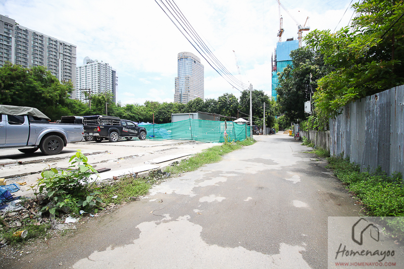 ติดกับที่ดินโครงการทางซ้ายมือ เป็นบ้านเดี่ยว ถัดไปเป็นอพาร์ทเมนท์ สูง 4 ชั้น ส่วนอาคารสูงที่เราเห็นด้านหลังคือโครงการรุ่นพี่ Chewathai Residence และ Rhythm Asoke I