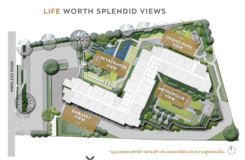 ทำเลที่ตั้งโครงการ – โครงการ Life One Wireless จาก AP มีทำเลติดถนนวิทยุซึ่งเป็นถนนเก่าแก่ใจกลางเมืองที่มีมูลค่าสูงและโดดเด่นที่สุดในกรุงเทพ มี Central Embassy ศูนย์การค้าลงทุนสูงที่สุดในเครือเซ็นทรัล ซึ่งอยู่ห่างจากโครงการเพียง 450 เมตร เท่านั้น และมีทางเดินเชื่อมต่อกับ Central ชิดลม ที่อยู่ติดกันได้ด้วย โดยโครงการ Life One Wireless จะอยู่ฝั่งตรงข้ามที่ดินของโรงแรมปาร์คนายเลิศที่ BDMS (เครือรพ.กรุงเทพ) ได้ทุ่มเงินกว่า 1 หมื่นล้านบาท ซื้อไปทำศูนย์สุขภาพครบวงจร Wellness Center ที่ตอนนี้เริ่มก่อสร้างไปเรียบร้อยแล้ว