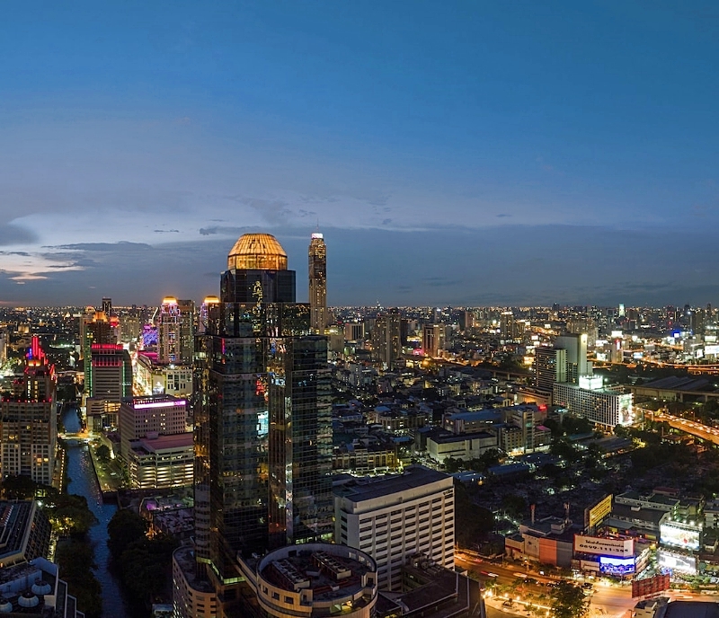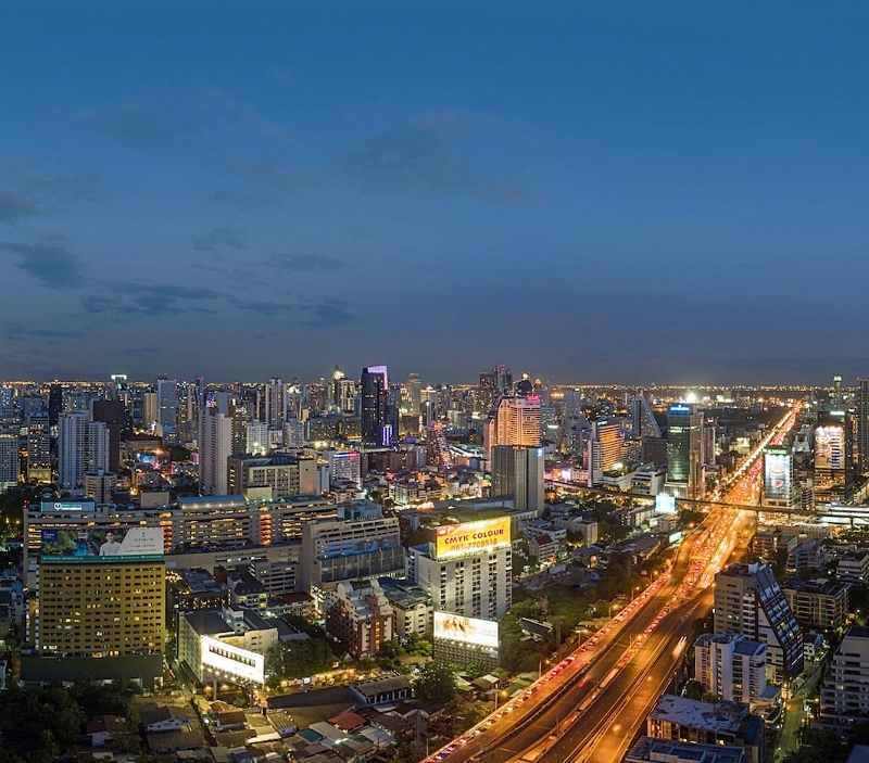 Skyscraper View หันไปทางทิศตะวันตกเฉียงเหนือ เป็นมุมวิวเมืองฝั่งถนนเพชรบุรี ทิศนี้มองไปเห็นตึกใบหยก ซึ่งเคยเป็นตึกที่สูงที่สุดในประเทศด้วย