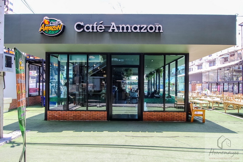 ด้านหน้าริมถนนใหญ่ มีร้าน Cafe Amazon ที่เปิดขายเกือบทั้งวัน
