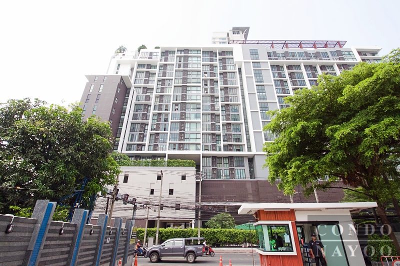 จากภายในโครงการมองไปที่ถนนฝั่งตรงข้ามเป็นโครงการคอนโด Ideo รัชดา-ห้วยขวาง สูง 19 ชั้น