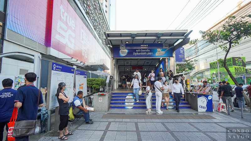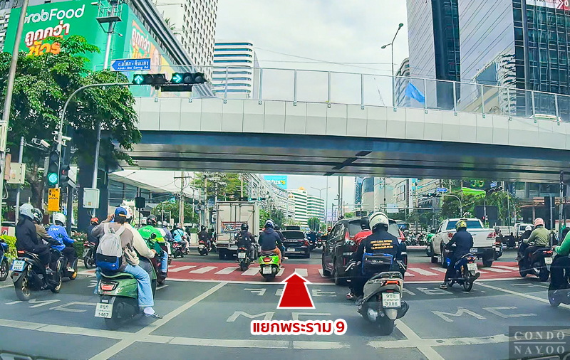 ด้านหน้าเป็น MRT พระราม 9 ประตู 1