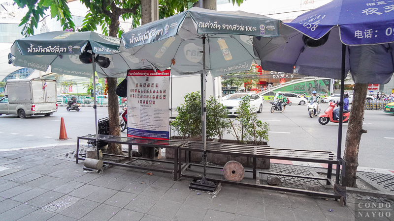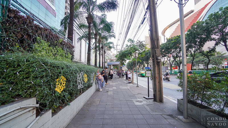 ทางเท้าข้างสถานีรถไฟฟ้าค่อนข้างกว้าง ใช้งานสะดวก และตรงนี้จะมีคิวมอเตอร์ไซค์ให้บริการตลอดทั้งวัน
