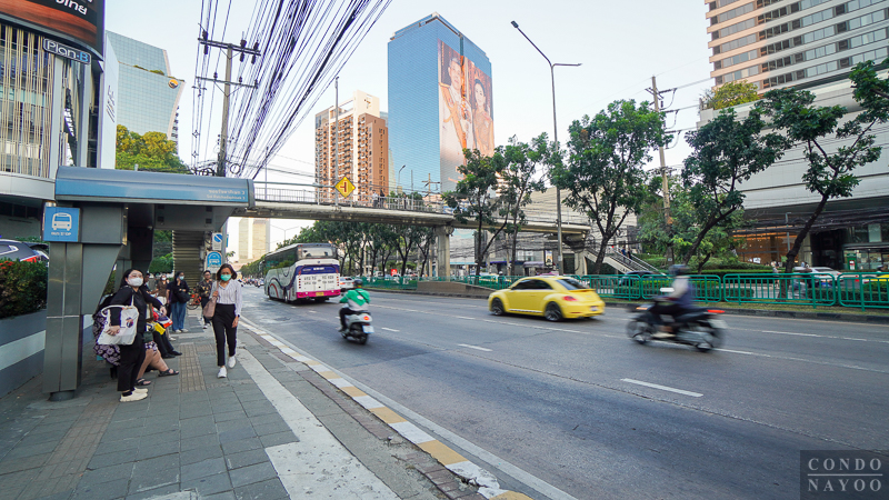 มีป้ายรถเมล์และสะพานลอยให้ใช้งาน