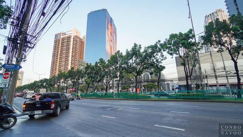 ตรงมาจะเจอกับ CP Tower 2 (Fortune Town) และบันไดทางขึ้น-ลงรถไฟฟ้าอีกจุด