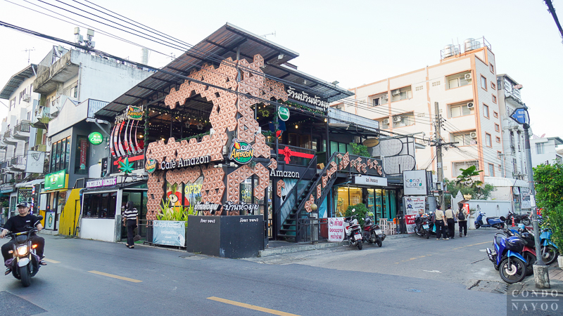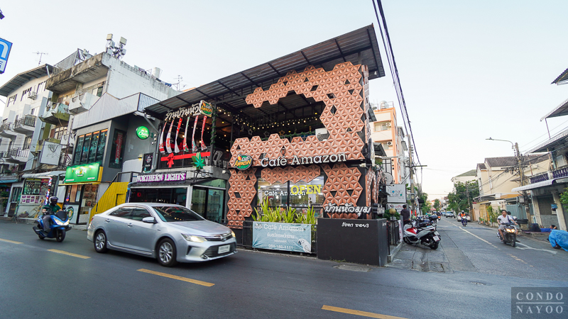 ขวามือเป็นร้านอาหารบ้านหัวมุม และ Cafe Amazon