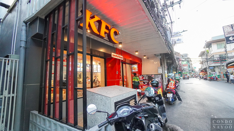 ถัดมาจะมี KFC ร้านอาหารเปิดขายหลายชนิด และมีร้านยา รวมถึงคลินิกรักษาโรคทั่วไปเปิดอยู่เป็นระยะ ๆ ใช้ชีวิตได้สะดวกมาก ๆ